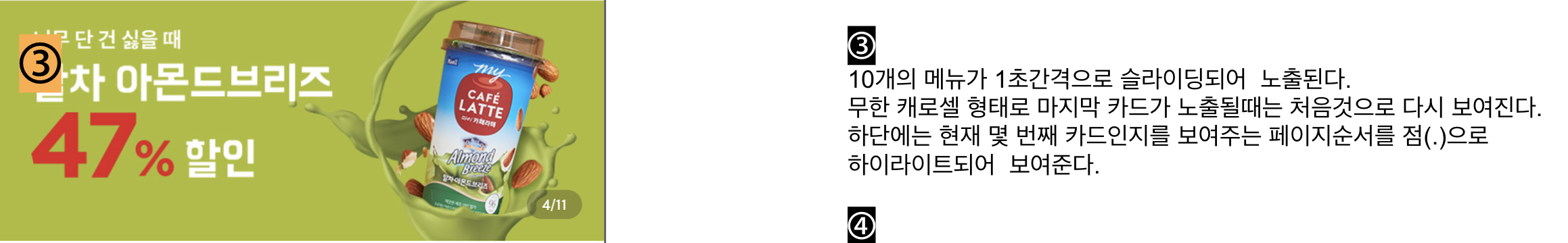 웹 페이지에서 흔하게 볼 수 있는 무한 캐러셀 기능입니다. 지정한 term마다 다음 메뉴로 슬라이드되어 보여지며, 마지막 페이지 이후에는 다시 첫 번째 페이지가 등장하여 메뉴가 무한히 있는 것 처럼 보입니다.
